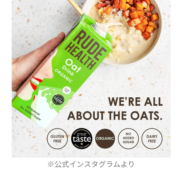 Rude Health(ルードヘルス)は、イギリス・ロンドンで誕生した自然派フードブランドで、「精製されたものに頼らず、できるだけホールフードに近い形で製品を作る」という理念を掲げています。その代表格ともいえるのが 「Organic Oat Drink」。