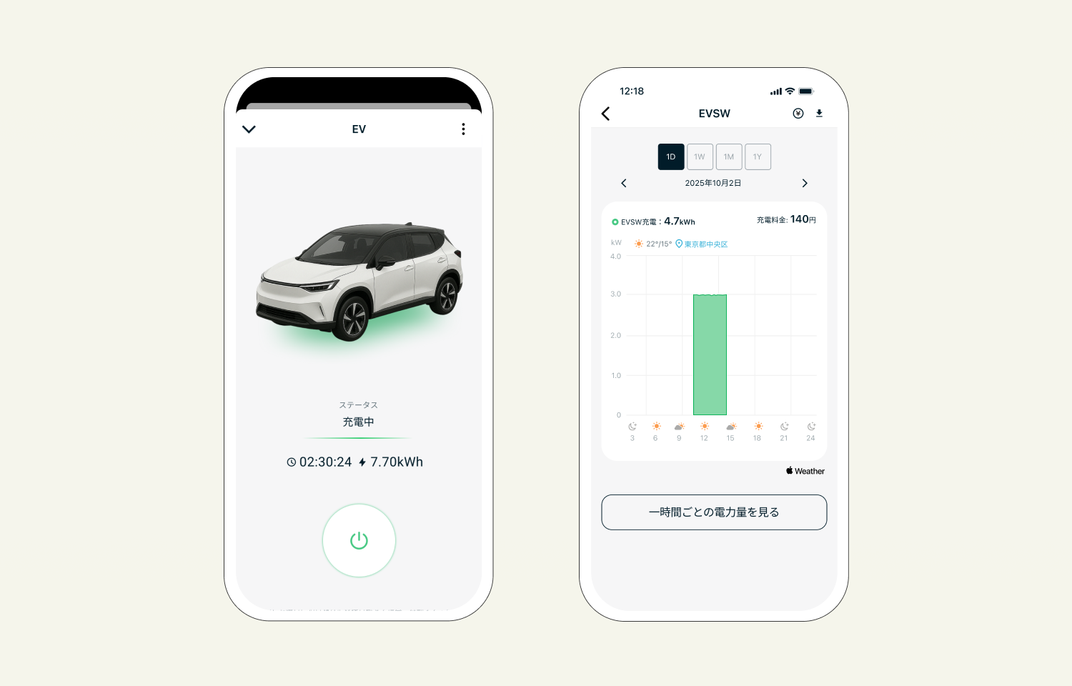 スマートフォンアプリ・Nature Homeから日・週・月・年単位で充電状況の確認・制御が可能で、EV充電体験をより便利で賢くアップデートします。